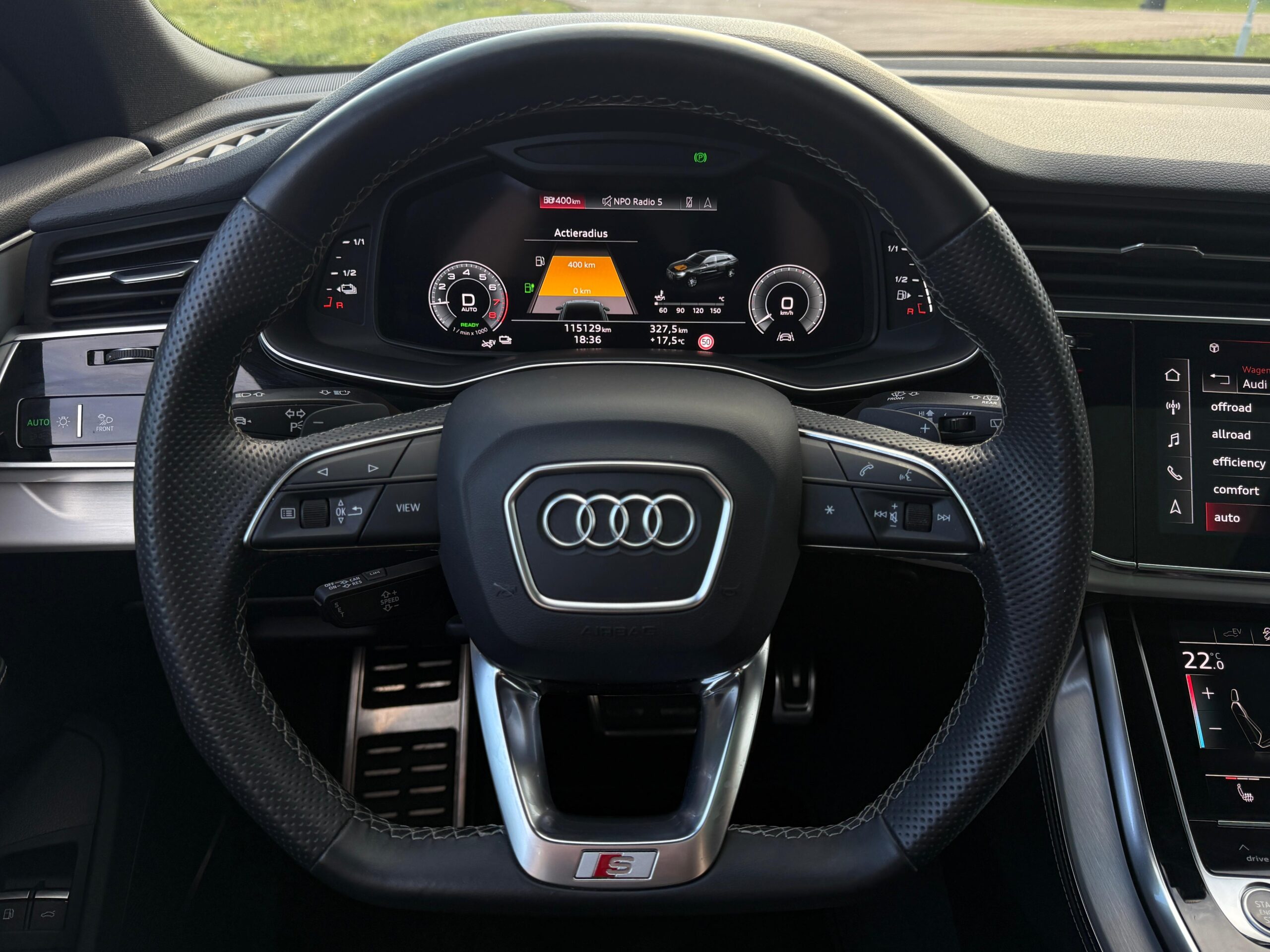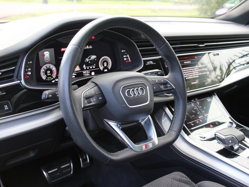 Het S line interieur en exterieur in diepzwart, de 21-inch lichtmetalen velgen en de Matrix LED-verlichting versterken het dynamische en zelfverzekerde karakter van deze Q8. In het interieur komt alles samen: hoogwaardige materialen, verwarmde sportstoelen, lederafwerking en een volledig digitale cockpit creëren een omgeving waar comfort en technologie hand in hand gaan.